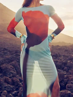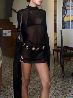 2024 Fashion Mesh Sheer Bodysuit Dress