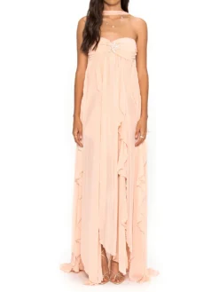 Women Summer Sleeveless Dress Irregular Ruffled Hem Backless Cocktail Party Dress for Beach Club Streetwear